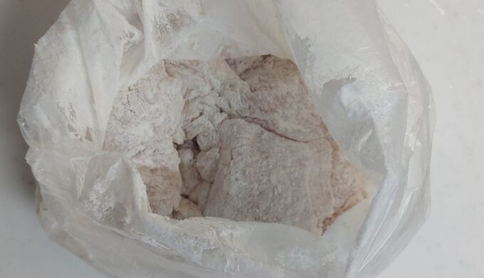 - 片栗粉をまぶしてコーティング