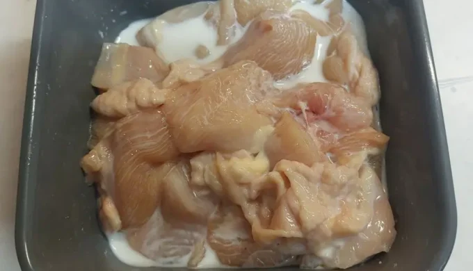 1分ほどワシワシと牛乳をお肉にしっかりもみ込んでいくと、アラ不思議!牛乳がどんどんお肉に吸われて(?)無くなってしまいました。